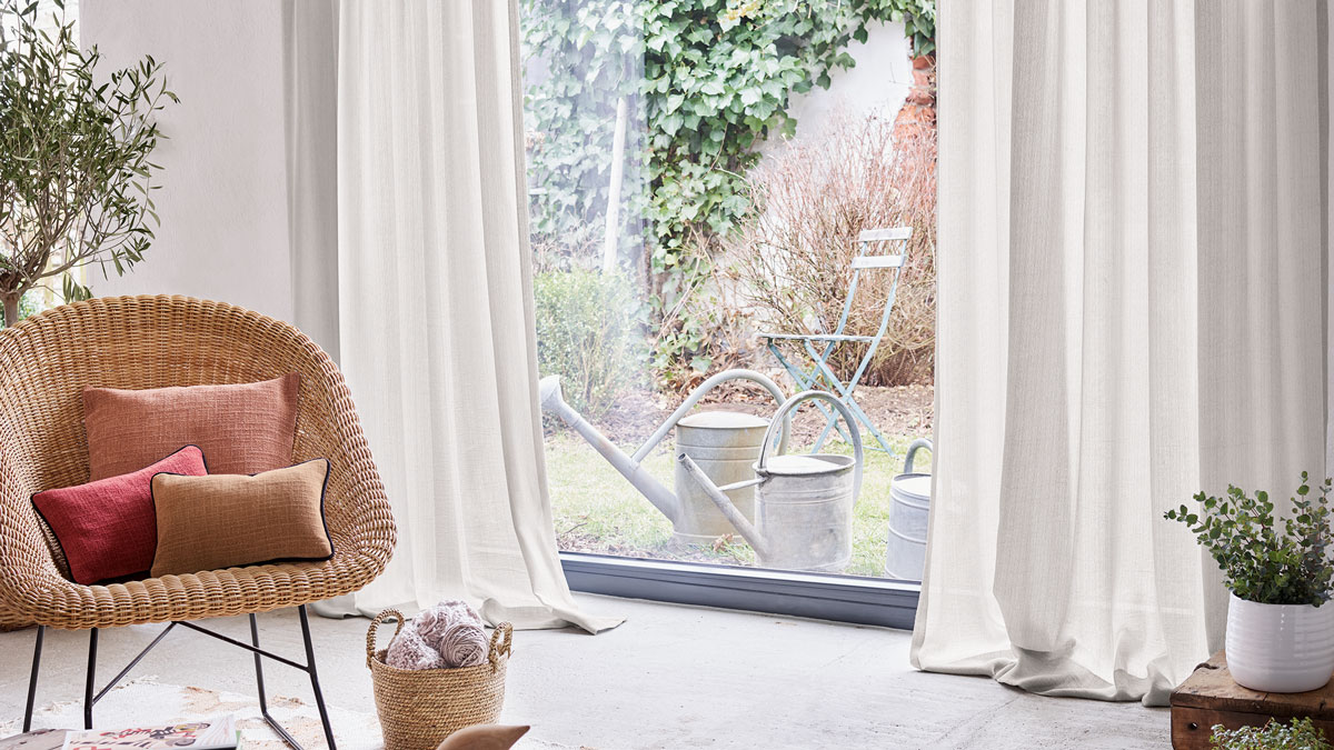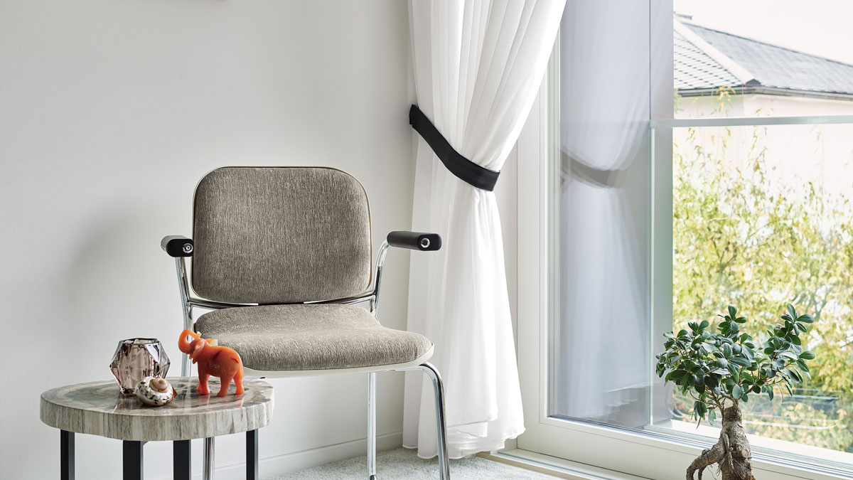Für eine lichtdurchflutete Atmosphäre mit einem sanften Sicht- und Blendschutz. Helle Töne und Fließende Stoffe schenken dem Raum Weite.