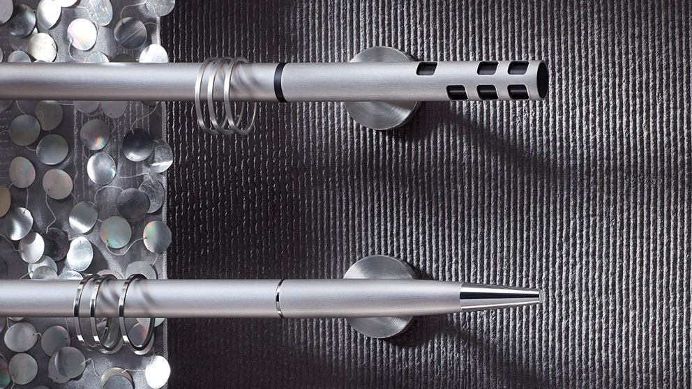 Die Kollektionen von interstil bieten für jede Dekorationsart die passende Vorhangstange. So können Sie die Stange direkt abgestimmt auf Ihre persönlichen Designvorlieben wählen. Selbstverständlich konfektionieren wir diese für Sie vor Ort auf Maß. Wir bieten Ihnen hochwertigen Edelstahl für Liebhaber des puristischen Stils, stilvolles Messing für elegante Einrichtungen, rustikales Eisen für Fans des Landhaus-Stils, klassisches Holz für natürliche Wohnumgebungen und praktische Seilspanner für filigrane, unauffällige Fensterdekorationen.