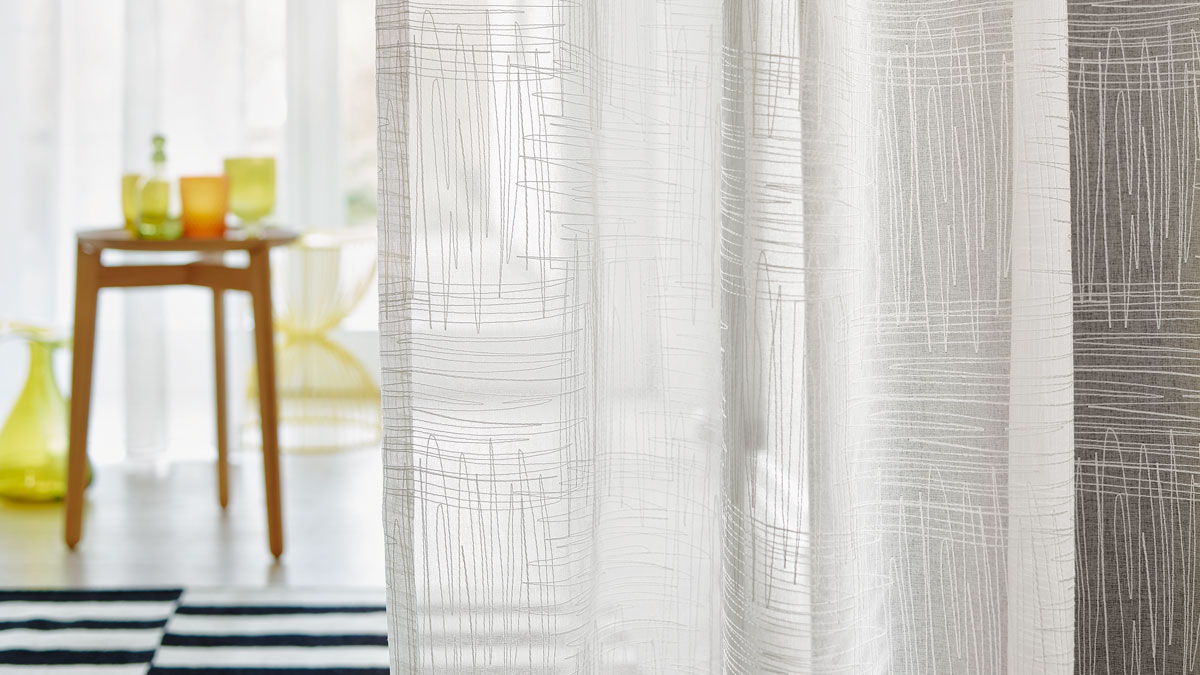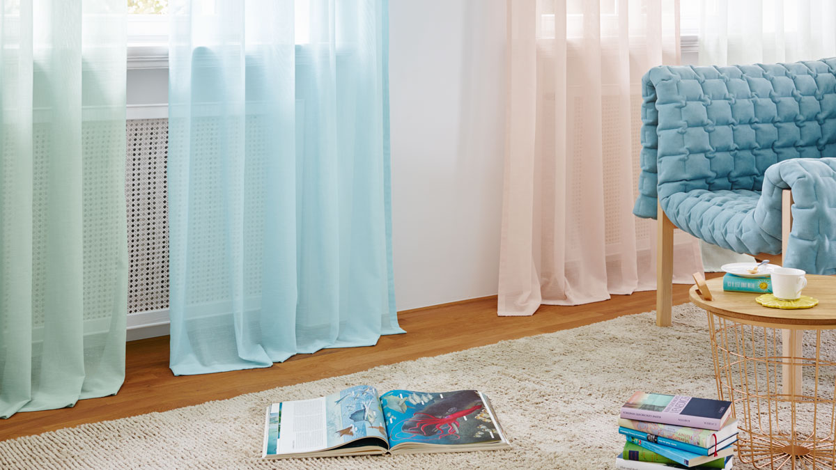 Für eine lichtdurchflutete Atmosphäre mit einem sanften Sicht- und Blendschutz. Helle Töne und Fließende Stoffe schenken dem Raum Weite.