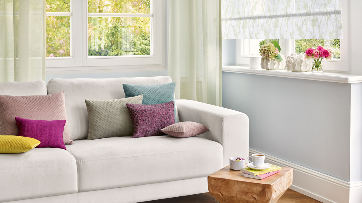 Sicht- und Sonnenschutz der gleichzeitig die Wohnraumgestaltung unterstreicht. Kombinieren Sie mehrere Lagen und originelle Stoffe für noch mehr Flexibilität.