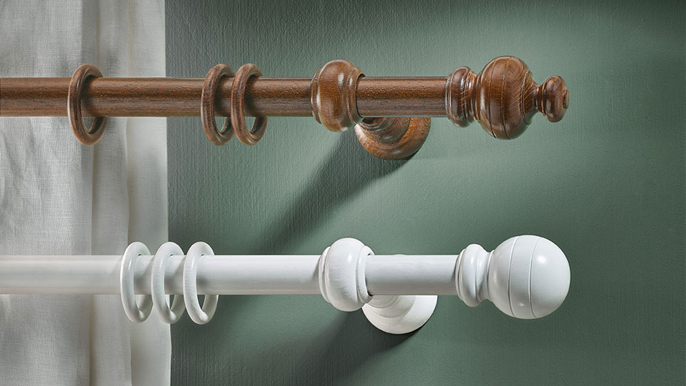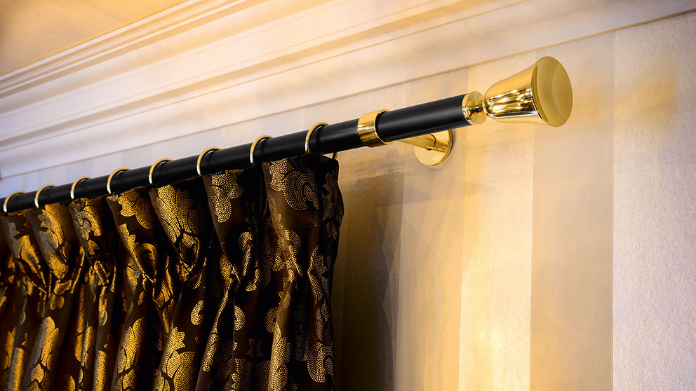 Neben den verschiedenen Vorhangstangen aus Metall erhalten Sie von interstil auch traditionelle Vorhangstangen aus massiven Hölzern. Ein einmaliges Verfahren ermöglicht es, längere Vorhangstangen mit echten Edelholzfurnieren zu ummanteln. So können wir in diesem Bereich sowohl reine Holzgarnituren als auch Kombinationen aus Holz und Metall anbieten. Dadurch entstehen immer neue Möglichkeiten für einzigartige Designkollektionen, die für verschiedene Einrichtungsstile geeignet sind.